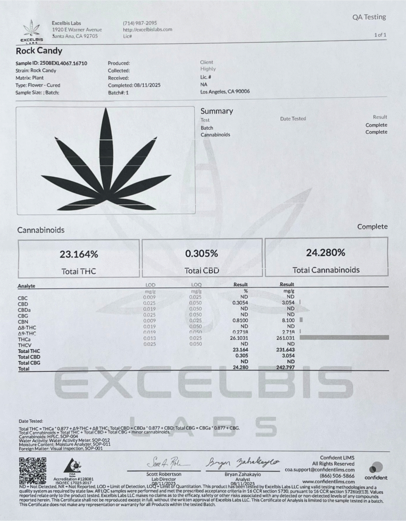 Lab Test Results THCa 30.51% | Total Cannabinoids 28.90% | Delta 9 THC 0.30% Terpene Profile: Myrcene, Limonene, Caryophyllene
